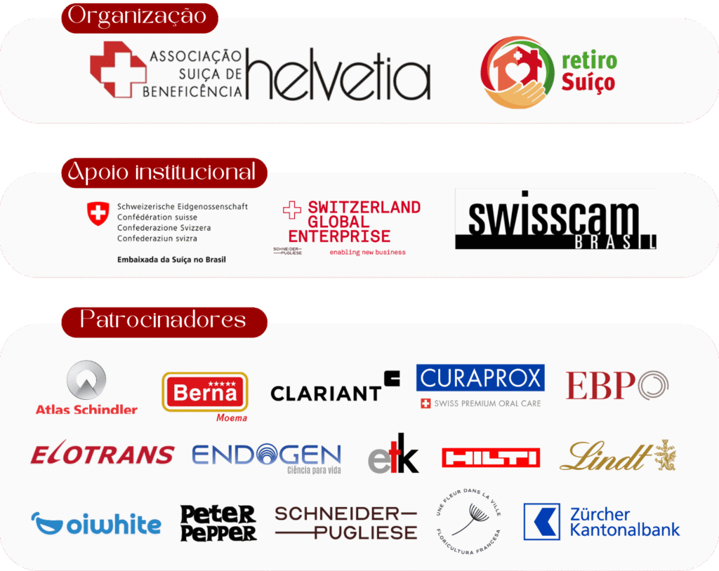 4 ingressos, com logotipo no convite oficial, logotipo na tela na entrada e menção nominal do patrocinador no evento para patrocínio de Apéro, Banda ou Super Tombola
